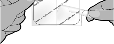 The unprinted, sticky side of the SANCUSO transdermal system is covered by a 2-piece stiff (rigid) plastic film. Bend the transdermal system in the middle. Slowly peel 1-half of the stiff (rigid) plastic film. Be careful not to stick the SANCUSO transdermal system to itself. Do not touch the sticky side of the SANCUSO transdermal system.
